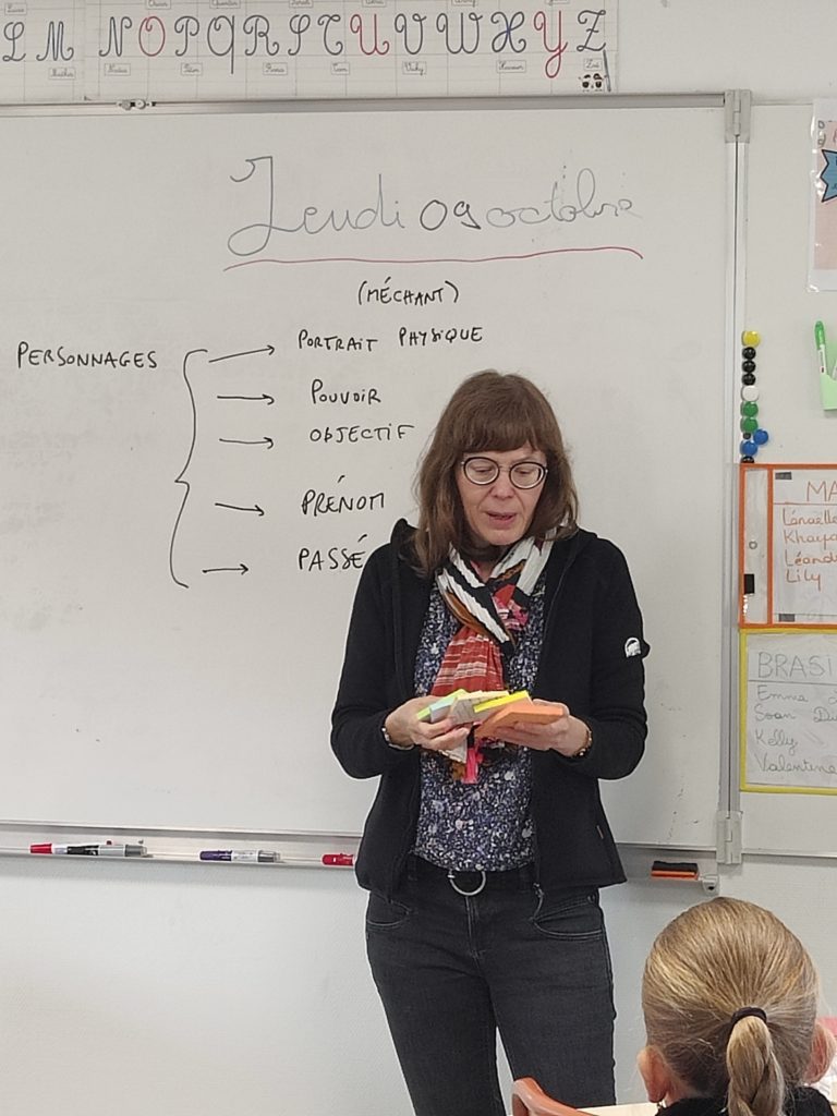 Nous avons accueilli Anne Schmauch, autrice. Elle nous a proposé un atelier d’écriture : créer son « méchant ». Puis, nous avons parlé de l’un de ses livres, Hold-up intergalactique, que nous avons adoré !