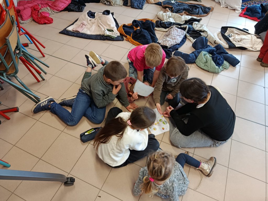 Cet après-midi, nous sommes descendus sur l’estran afin de collecter des animaux marins. Nous avons vu des crabes, des crevettes, des poissons comme le nérophis, des bigorneaux, des palourdes, des huitres… Puis, les enfants ont remonté courageusement le chemin jusqu’au car.