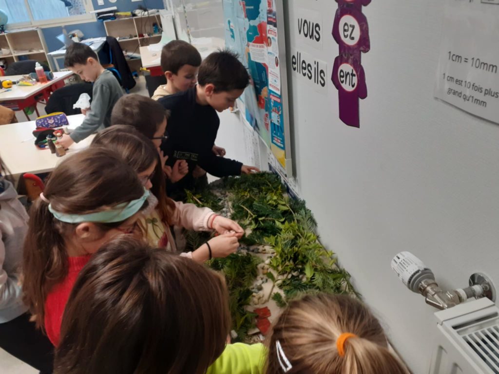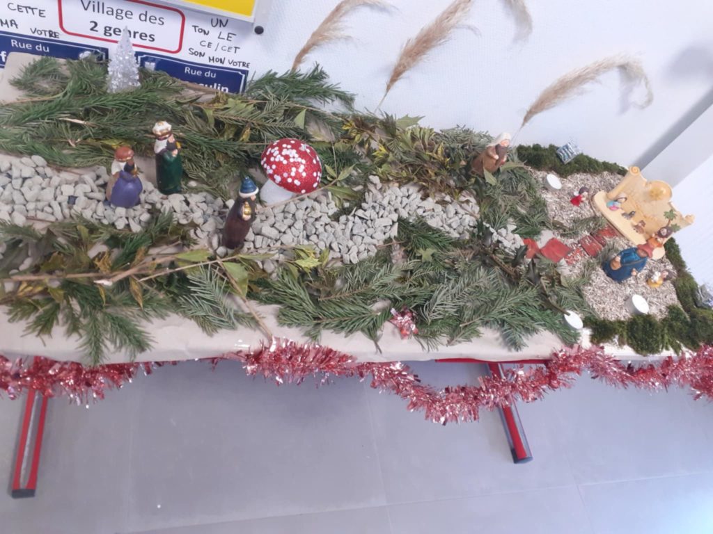 Enfin, pendant ce mois de décembre, nous avons mis en place une crèche dans la classe à l’aide d’éléments de la nature. Le dernier jour, nous avons participé à la célébration de Noël à l’église, aux ateliers de Noël avec les autres classes et nous avons même rencontré le Père Noël qui nous a offerts quelques cadeaux.