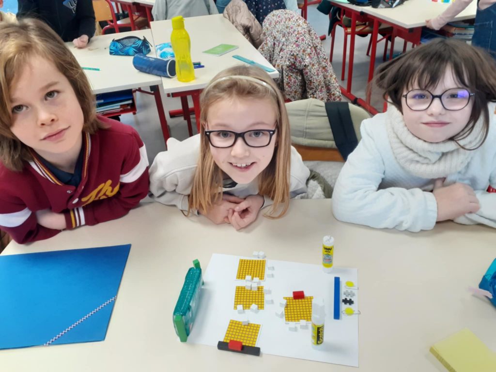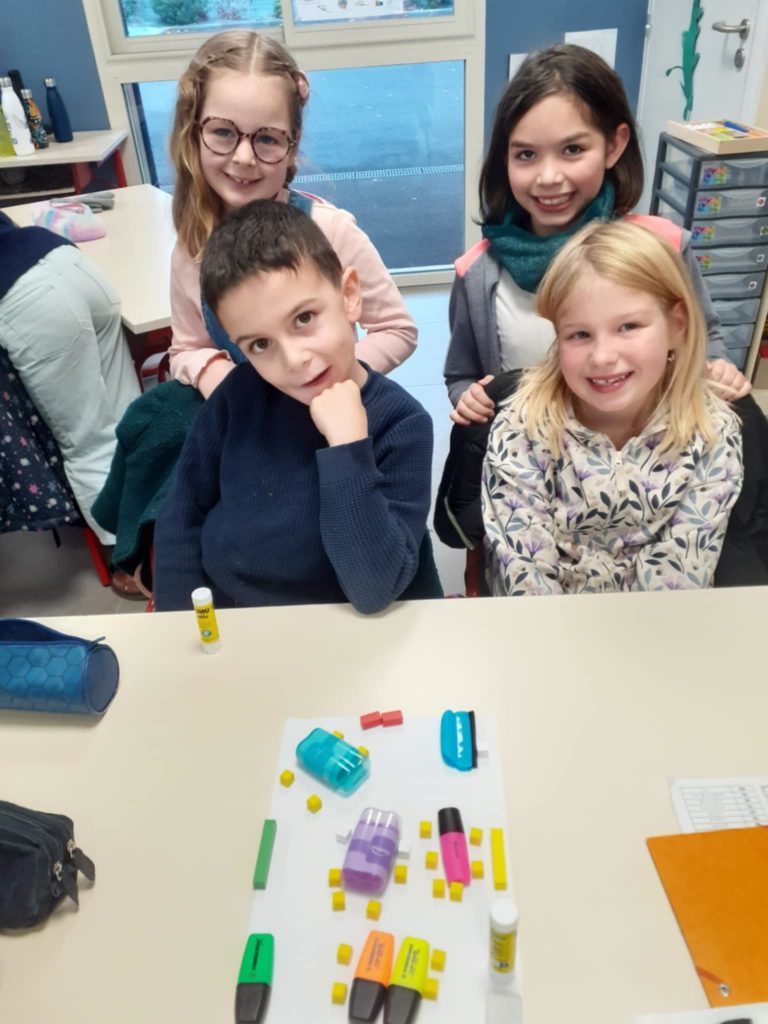 Nous avons également travaillé l’espace à travers des plans. Nous avons essayé de représenter le plan de la classe avec des objets rectangulaires ou circulaires.
